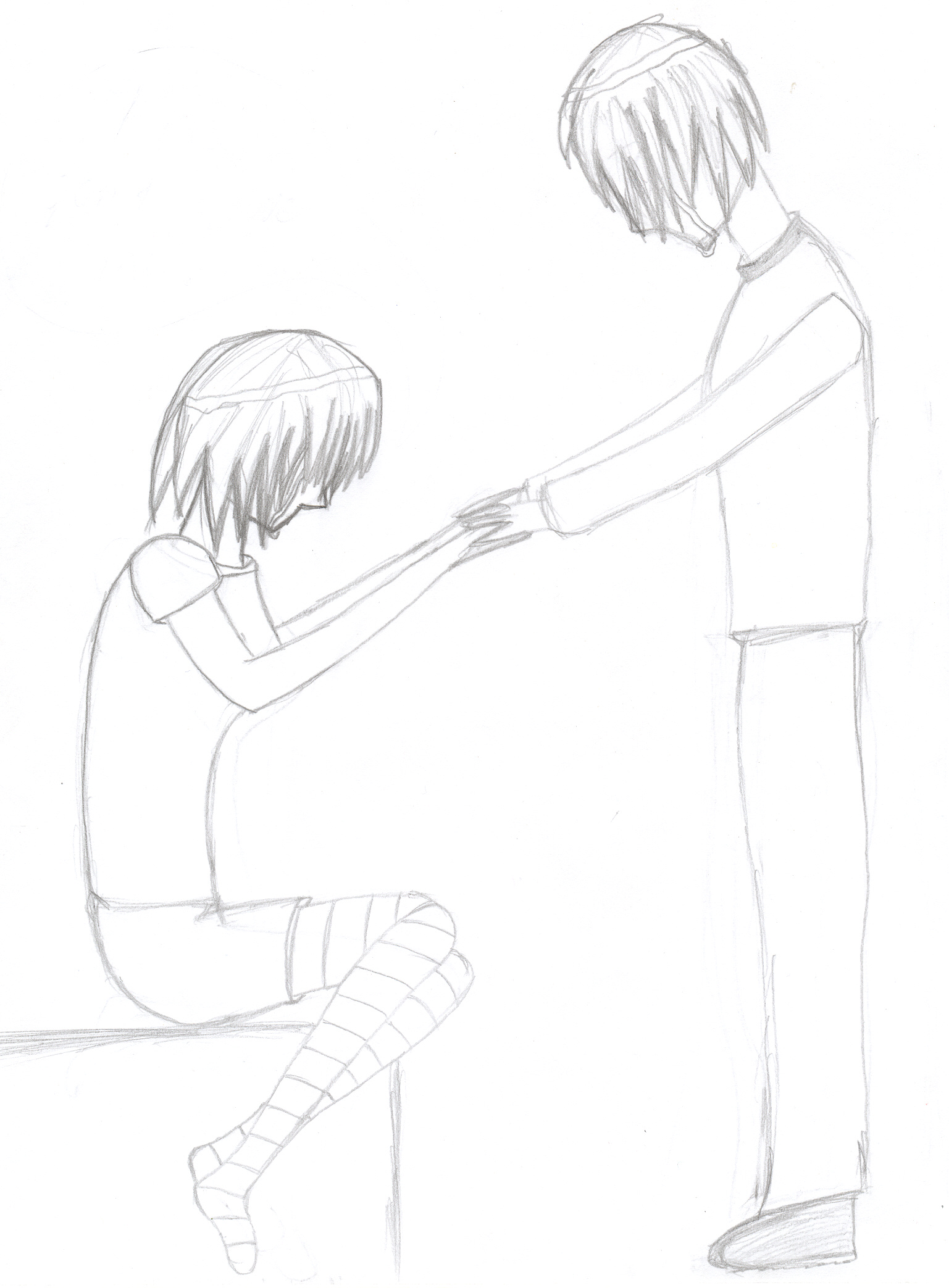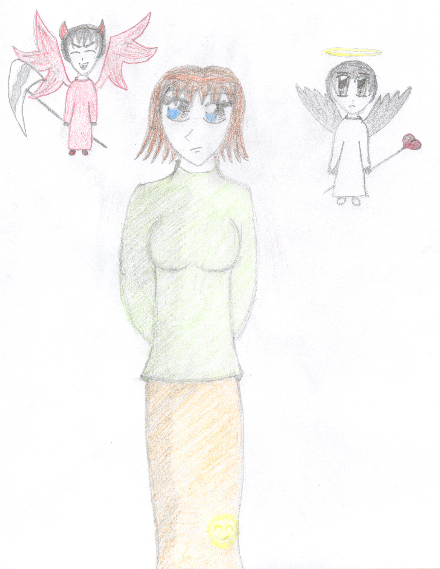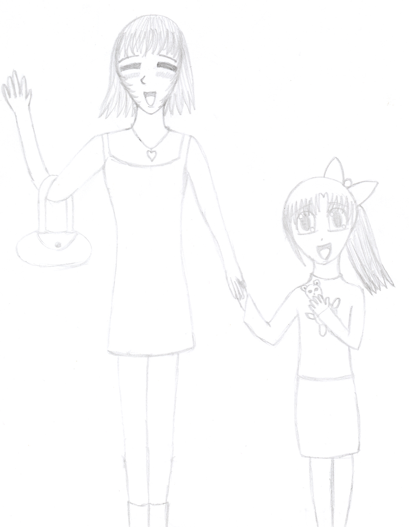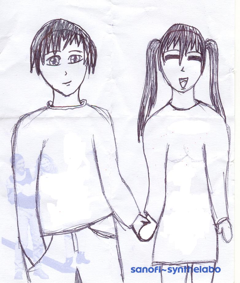 Ok, 1.: Tātad pirmais. Attēlota auklīte ar pieskatāmo meitenīti un auklīte māj itkā prom ejošajai meitenītes māmiņai. Mazai meitenītei rokā lācītis. 2.: Nu, šis darbs ir... 3.: Šī meitene zīmēta ar sarkano pildspalvu, bet jāatzīstas ka šis nemaz nav orģināldarbs. Orģinālajam uz krekliņa bija uzraksts, bet tad man likās, ka daudzi to noteikti nesapratīs vai uzskatīs par stulbu, tāpēc es paintā šo meitenes kreklu pielaboju, un vēl īstajā darbā bija vēl viens acu pāris un aizšvīkāts acu pāris, bet arī tos es izdzēsu. 4.: Tā, šis pāris ir zīmēts uz piezīmju lapiņas, tāpēc nebrīnieties par to zilo uzrakstu uz meitenes kājām un to drukāto zīmēju pie zēna krekla. Meitenes krūtis nav sanākušas, bet sasodīts, plaukstas un krūtis man nekad nav labi sanākušas. un 5.: Tā un šis darbs: teikšu godīgi, man pašai patīk. Wīīī, pakomentējiet lūdzu!! -------------------- ~Today is always the most enjoyable day~! ![]() |
