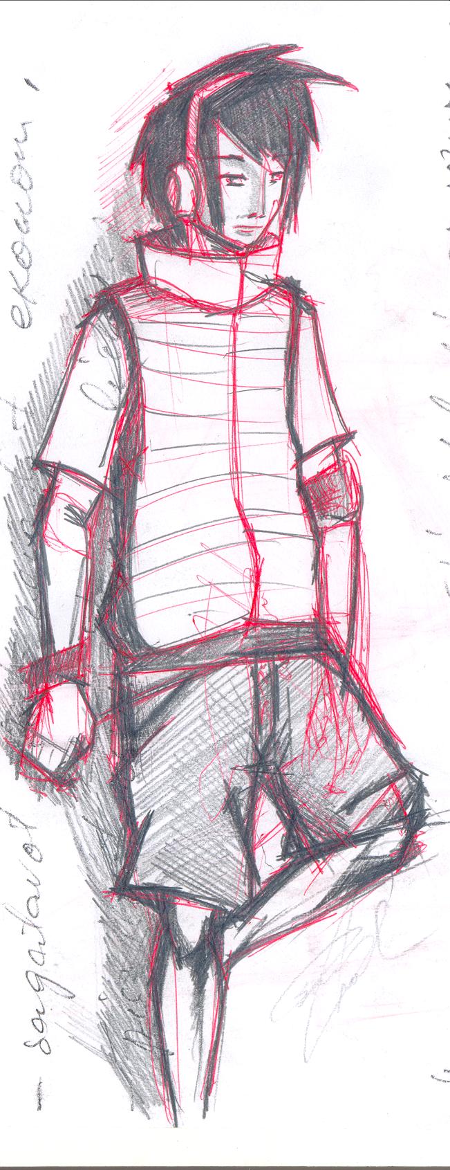 Pirmā skice ir laba un sarkanā pildspalva? Piedod darbam savu rozīnīti, tomēr šortu ieloces šoreiz nav sevišķi labi sanākušas. Otrais darbiņš arī sanācis tīri interesants. Traucē tas, ka līnijas ir spurainas un nekārtīgas, bet kā jau tu teici tās ir tikai skices. Tomēr es domāju, ka ja tu pārmaiņas pēc kādu no savām skicēm izstrādātu līdz galam tad mēs te varētu ieraudzīt patiešām skaistus darbus. Tāpēc uzrodas jautājums kāpēc tavā topikā ir tik liels skiču pārsvars? Laika vai pacietības trūkums?