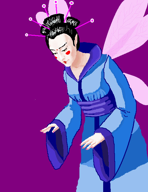Rokas sanākušas mazliet neveikli un svārki pie vidukļa neizskatās īsti labi, bet kopumā ņemot, man patīk ^^ Krāsas acij tīkamas, seja un mati labi izdevušies ^^