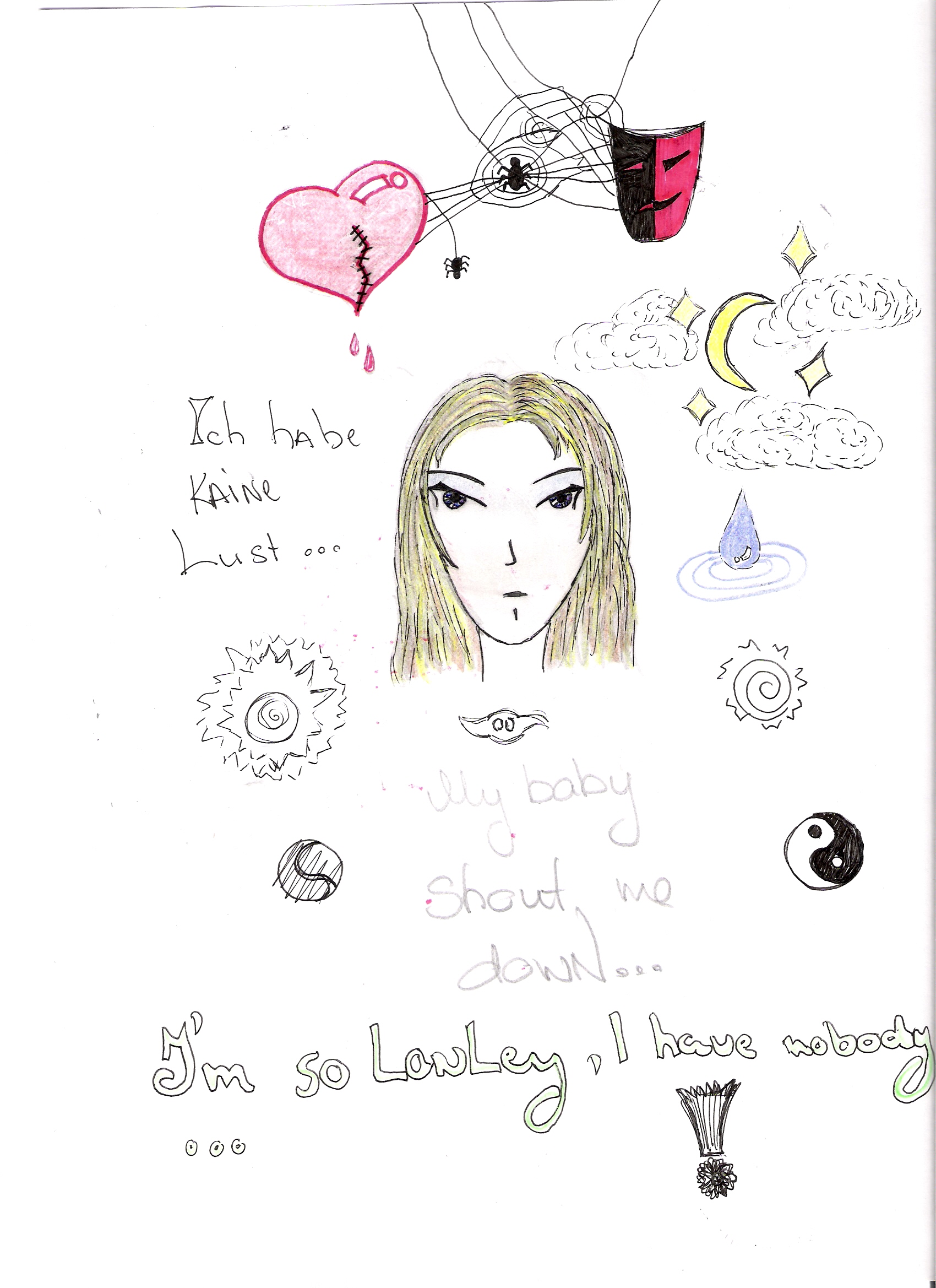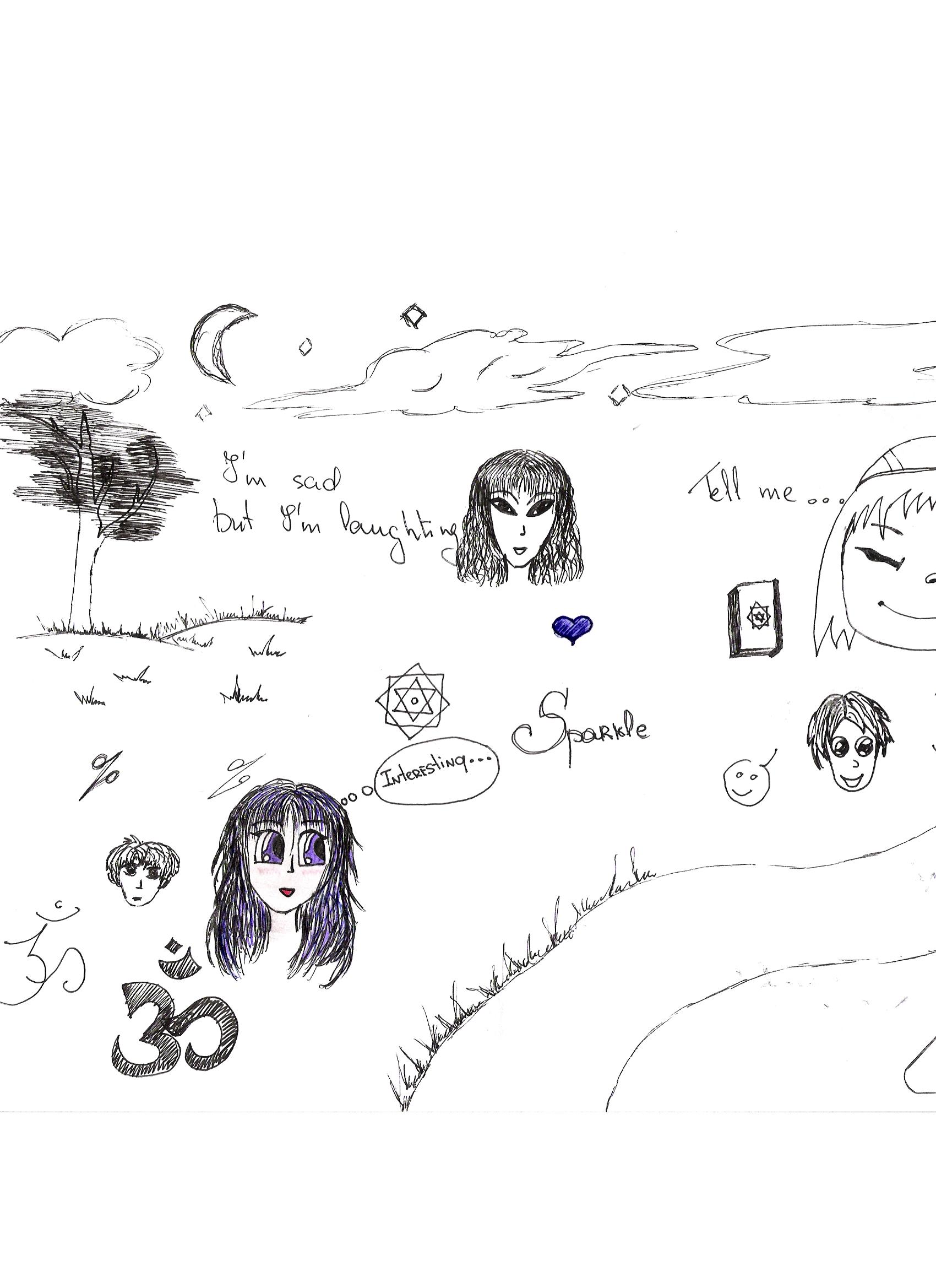 Vislabāk tev sanākusi tā meitene pirmspēdējā zīmējumā, tikai acis tādas kā nedzīvas...vispār jau labi, tikai man šausmīgi nepatīk ka tu zīmē to svītru uz zoda dažos zīmējumos.