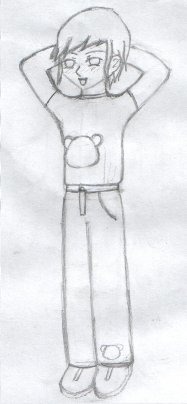 Proportions-OK, Face,Head-OK(acis ir savā vietā un tas ir labi), Body-Average(nedaudz derētu auduma izliekumu...vienkārši uzzīmē ka tā maika ir saburzīta) Hands-Not visible(visi mākslinieki savos zīmējumos kautko slēpj), Feet-Average(kautkas ar tām botām nav kārtība,vajadzētu tās izliekt katru uz savu pusi) Full count-Normal for beginner. Tu šajā jomā vēl nieliec visu centību,daudz jāpiestrādā pie detaļām,lai varonim piedotu garšu. Galvenais mācies no citiem un vēro,vēro,vēro. No tutorials iemācies izstrādāt proporcijas un lai viss atrastos savā vietā.Izstrādā savu stilu pielieto to,lai citi tevi atpazītu. P.S.Ēnas,ēnas un ĒNAS!!!! -------------------- ![]() When you do things right,people will think you haven't done anything at all. |