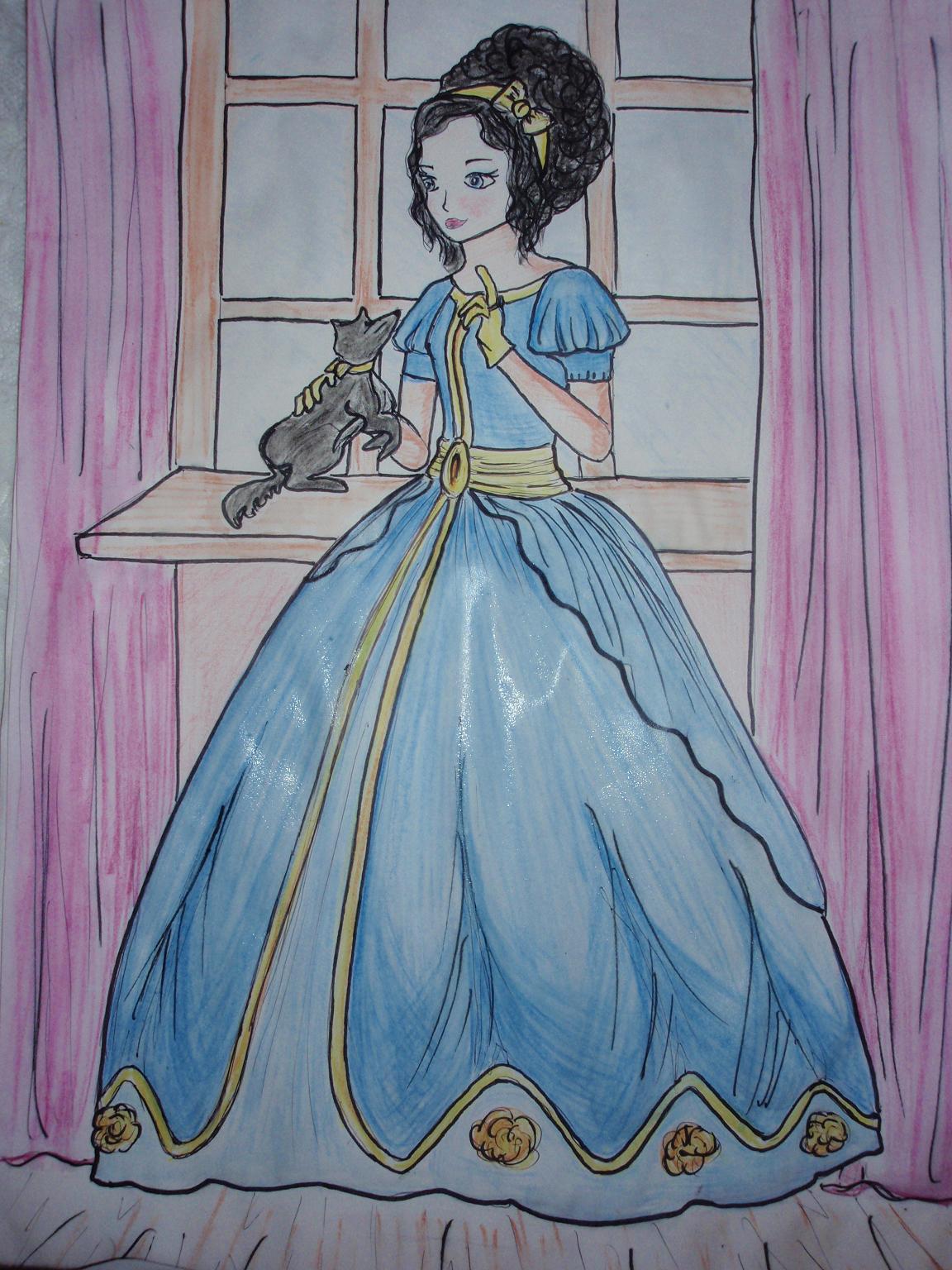 Nekad nav izdevies saprast, kāds tieši ir rokoko, tāpēc brīva interpretācija. Ok, piedruknes būtu rokokīgāk. Un kārtējo reizi tikai monitorā ieraugu gan to, ka viena roka par tievu, otrai apakšdelms par garu, kleita ir rozā un ar akvareļzīmuļiem vēl nemāku apieties.