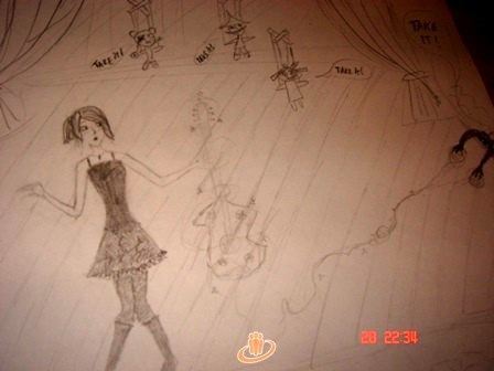 Zīmējums ar kaķa ausīm ir novietots manā istabā, ļoti ievērojamā vietā. Zīmēt labi nekad neesu mācējusi, tādēļ nevajag brīnīties, ka tik atbaidošs zīmējums. Zīmēt patīk... tomēr... Vēl es redzēju šeit, ka daži zīmē anime paintā... Es arī mēģināju, bet īsti nepabeidzu.... Tikuntā ir saprotams, ka tam ir vajadzīgs treniņš.