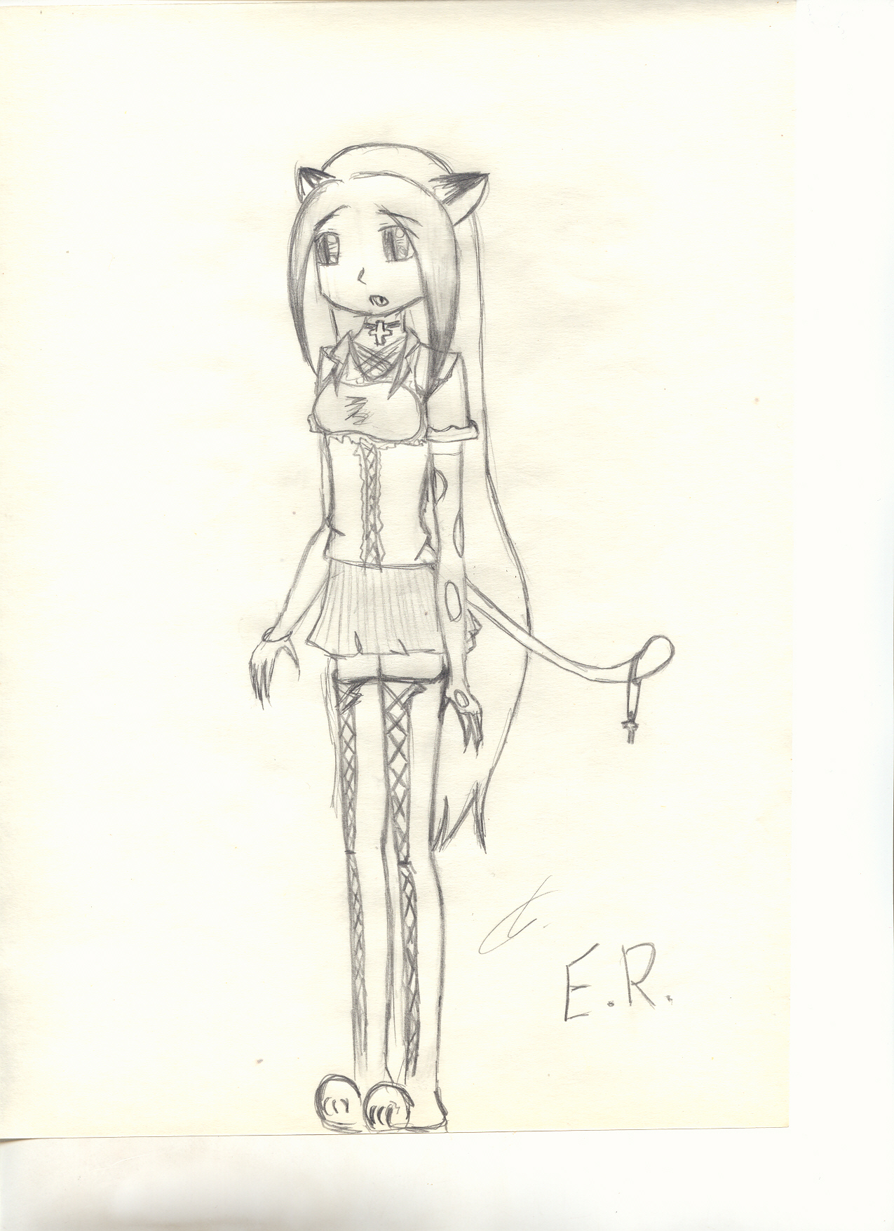 un vēliens jauns topiks... Nu ieprieksheejo es paludzu izdzeest tak shto.. man jāsaka, ka varēji gan šo darbu uzzīmēt rūpīgāk un daži iepriekšēje pat bijuši labāki. Nu jaa, ir bijushi, bet manupraat takaa esmu atsaakusi no jauna ziimeet un iemanjas esmu pazaudeejusi, man shkjiet, ka shis ir tiiri labs! iesaku zīmēt vairāk ar zīmuli uz papīra. btw baigi atgādina vienu charu no dote up cat... o_O fanarts? nope, tas nav fanarts un jau pirmajaa topikaa es rakstiiju ka driiz vien ieietoshu ar roku ziimeetos ziimeejumus! |