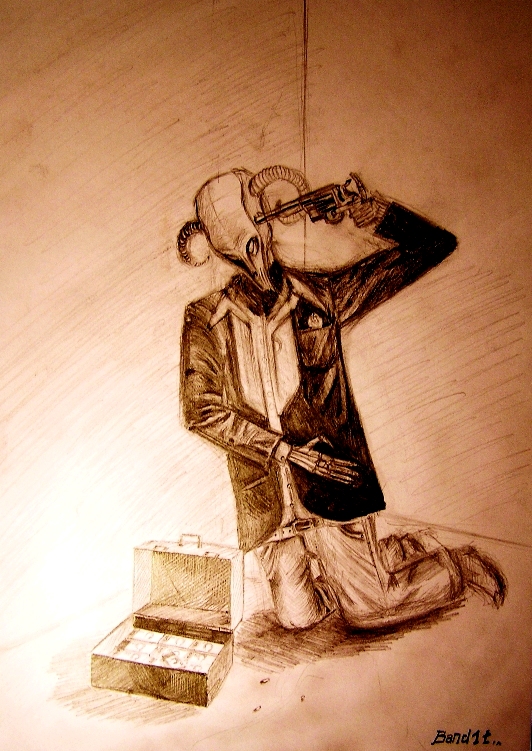 galva ir labi uzzīmēta, tik vajadzēja izdzēst tās palīglīnijas. un ja arī tās nav palīglīnijas, tad vajadzēja tās uzzīmēt savādāk, lai nerastos šāds iespaids. kalam ir jocīga forma, un tas ir par īsu. rokas arī ir par īsu, tādējādi elkoņi ir par augstu. džeks ir tāds dēlīgs, un viņam trūkst gurni, muskuļi. kājas ir stipri par īsu, un ceļi jebkurā gadījumā ir par zemu. pēdas nav izdevušās. manuprāt domāts bija, ka puisis ar vienu plecu ir atspiedies pret sienu. nu to var saprast tikai kārtīgi izpētot darbu. tā, kā vairākums user`u to nedara, te derētu ievilkt stingrāku grīdas un sienas savienojums līniju, bet ja es kļūdos, tad puisim ir baigais krampis, ja viņš bez muskuļiem var noturēt savu ķermeni šādā leņķī. koferītis ir uzzīmēts labi, tikai ja tā kārtīgi padomā, viņu nevar aizvērt. cik noprotu zem drēbēm slēpjas skelets, bet plaukstas izskatās pēc auto-mail`iem. ja tu vēlies zīmēt skeletus, tev derētu vairāk papētīt anatomijas, un vecās, labās, krievu zīmēšanas grāmatas, kurās ir labi aprakstīti un apzīmēti cilvēku skeleti, proporcijas u.t.t. man nepatīk ēnojums nedz uz puiša, nedz sienām. priekš manis pārāk švīkāts. ļoti labi uzzīmēta jaka, ieloces un krekls arī ir izdevies godam. jakai ir teicams ēnojums un atspīdumi. tik krekla apkakle ir nedaudz par stīvu, bet es jau sāku kasīties pie sīkumiem. es domāju, ka tu biji spējīgs izdomāt, un dabūt gatavu interesantāku fonu, nevis tikai īmō kōrneri. by teh way.. man ļoti patīk tas revolveris. labi sanācis. skaidrojošā vārdnīca. *auto-mail = ieraksti google un apskaties. *revolveris = nu tev gan vajadzētu zināt, ko tu pats zīmē. nu viss ko es vēl beigās varu piebilst ir tikai tas, ka tev ir talants un tava slimā izdoma. tie ir pietiekami iemesli, lai turpinātu zīmēšanu, un attīstītu savu zīmētprasmi. cheer up!~ Undux, lūk šeit tu kļūdies. Band1t savā darbā zīmēja cilvēku. nu kaut kādu zvēru ar cilvēka skeletu, un tas nozīmē, ka proporcijas nevar būt da jebkādas, jo tas ir un paliek cilvēka skelets. lai tā proporcijas būtu pareizas ir jāzīmē, tā kā tas ir pieņemts. (un man fascinē tavi vienateikuma posti) This post has been edited by Asuka: Aug 28 2007, 22:20 -------------------- don`t see. don`t hear. don`t talk. don`t care. ![]() |