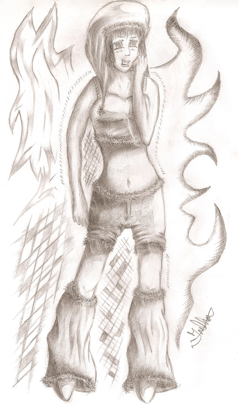 Bāc, pa visu šo laiku sanāca uzzīmēt tikai vienu zīmējumu ...! Nav jau nekas īpašs, bet tomēr! ^^ Kad tā paskatās var redzēt baigi daudz visādu sīku kļūdiņu, bet man vienkārši apnika visu laiku sēdēt pie viena zīmējuma, pie tam no paša sākuma šī bija domāta kā skice, bet beigu beigās nav iznākusi ne skice ne normāls zīmējums ... :] Daudz prasās piestrādāt pie anatomijas un ēnām!