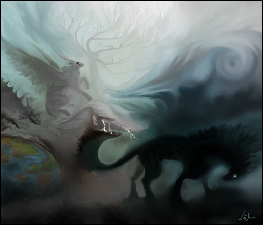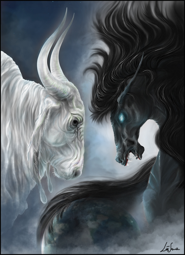 Tatad abi zveeri ir ljoti seni jeb Ancient creatures Vinji konkreetajaa bildee veido jeb celj meenesi un orgjinaali bilde saucaas Builders no shiis bildes viss arii saakaas... Sheit tuvaak var apskatiit Igriel (baltais veersis) un Luush (melnais zirgveidiigais) melnais atvars ir Igriela acs... Turpinaajums sekos -------------------- |
