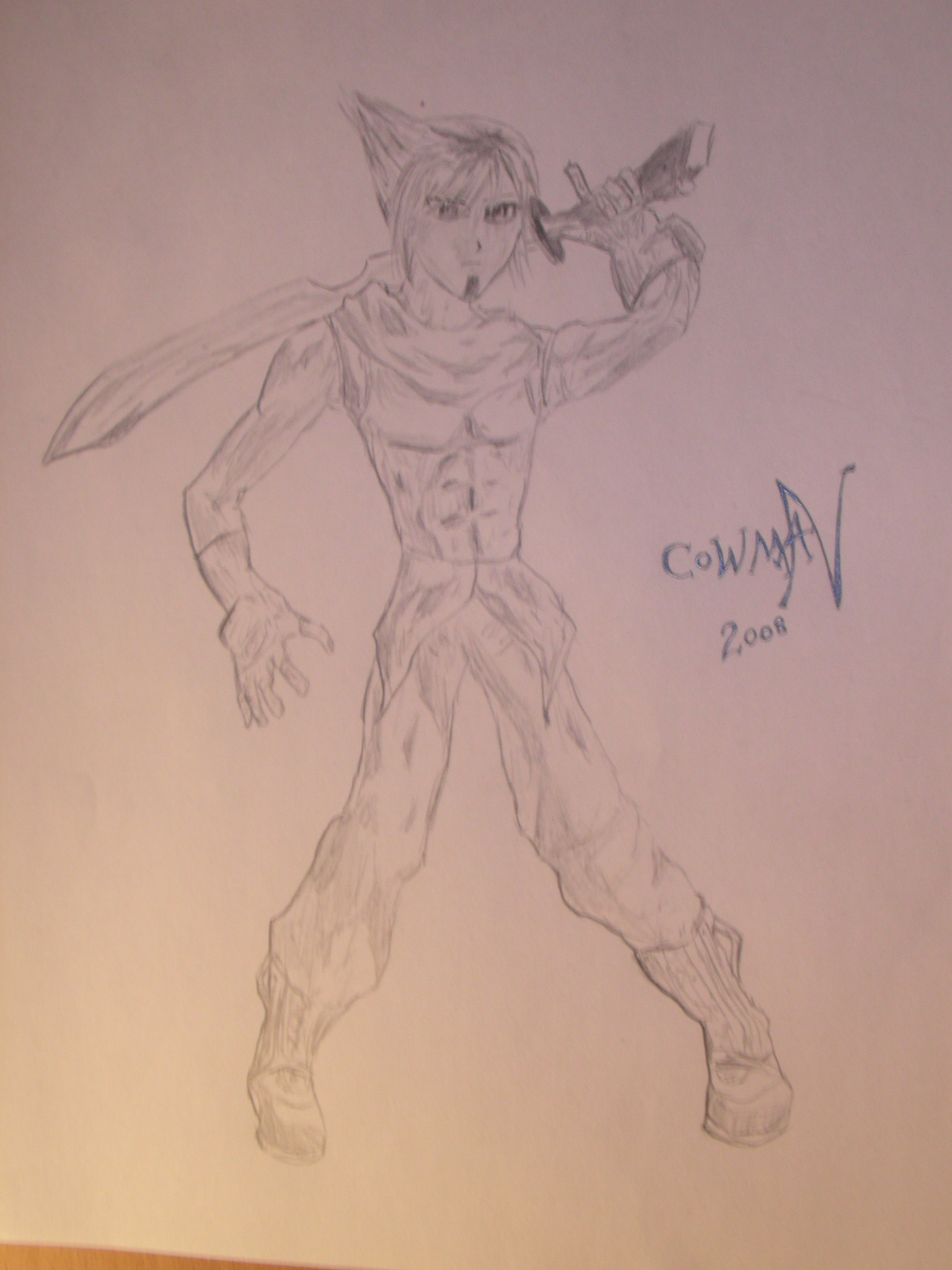 Viss it kā būtu vairāk vai mazāk labi/slikti priekš pirmā darba, taču cilvēks ar tādu rumpi nevar eksistēt. Cilvēkiem ir gurni, dupsis (vēlams trenēts un atsperīgs) un dzimumorgāni. Tavā zīmējumā tiem vienkārši nav vietas. Un laikam kājas dažādas sanāca. Un rokas arī nelabi pievienojas ķermenim. Pavēro, kā dabā tas būtu, citādi biški kokaini sanāk. A tā par visu pārējo, es jau teicu- ir norm. Redzama spēcīga potence, tāpēc turpini, tu noteikti varētu izvērsties par samērā jauku zīmētāju