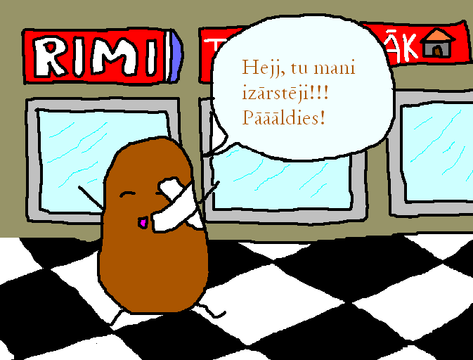 Unn..un šis zīmis māca to, ja jums nokrīt kartupelis uz grīdas, tad tam ir jāuzlīmē plāksteris, lai tas atveseļotos. Jā, es zinu, es neesmu normāla This post has been edited by Patachan: Jul 22 2008, 18:06 -------------------- Ēd manu ābolu.